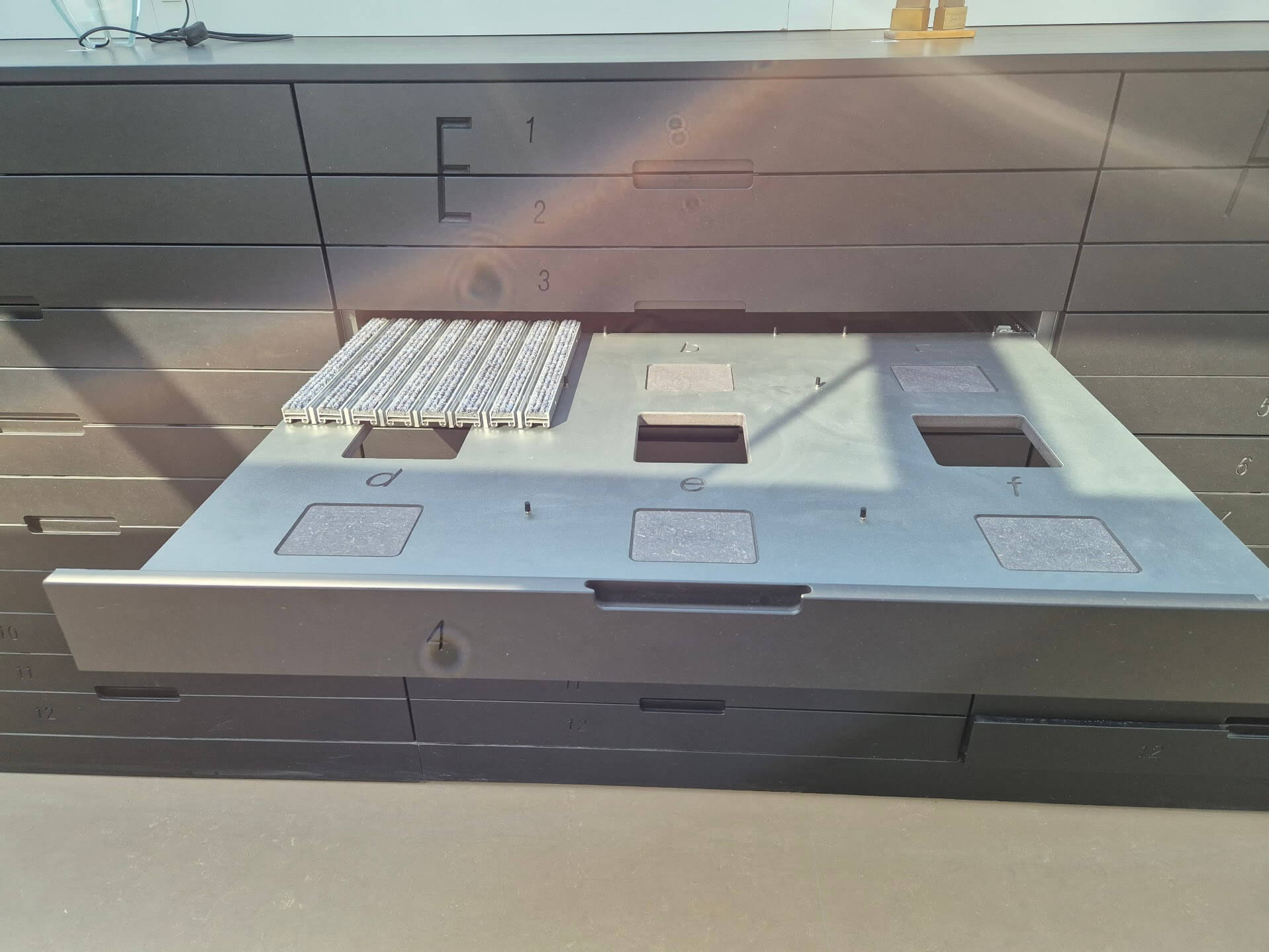 Echantillion physique : oui Emplacement meuble E , tiroir 3 , place C Choix couleur : non Format maximum: 6000 mm x 3000 mm
