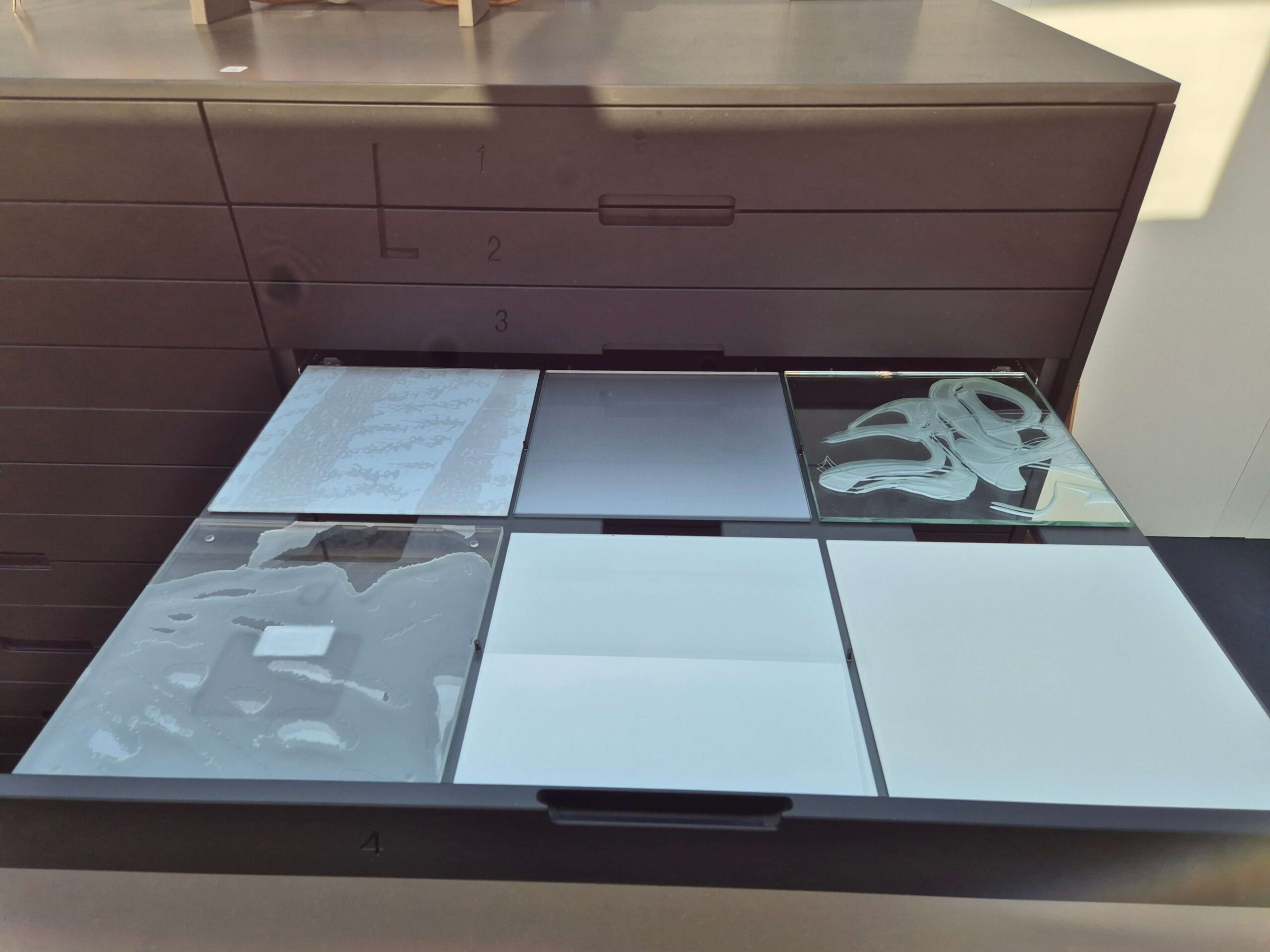 Echantillion physique : oui Emplacement meuble L , tiroir 4 , place D Choix couleur : non Format maximum: 2500 mm x 1200 mm
